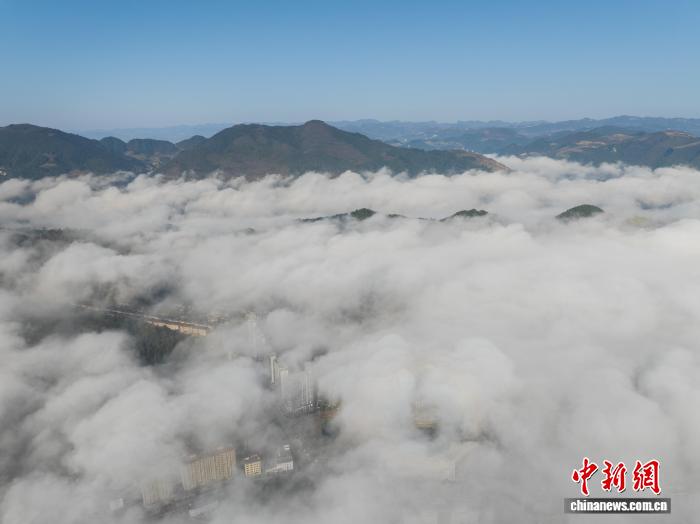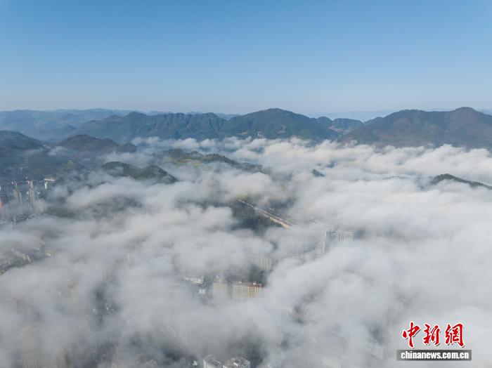 贵州务川现平流云景观 山城宛若画卷